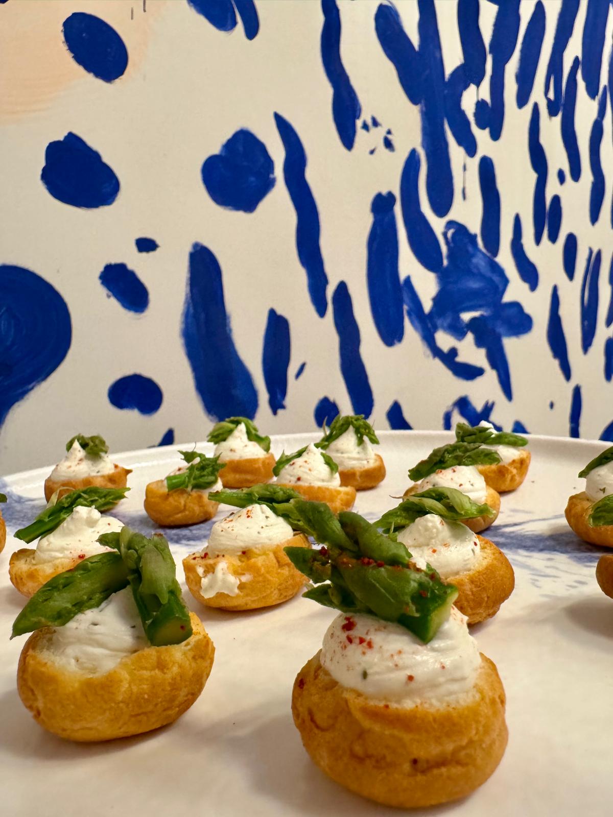 Corole d'asperges vertes, crème d’ail et herbes fraîches